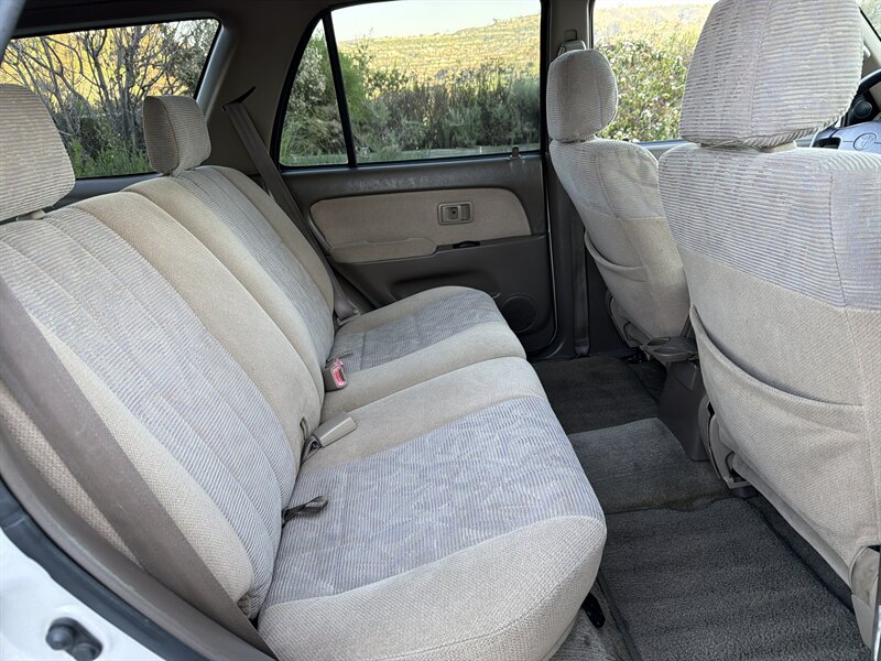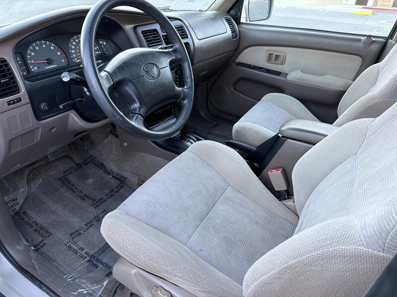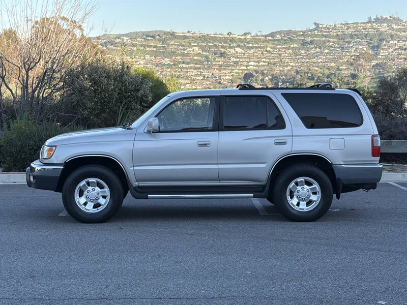 2000 Toyota 4Runner SR5 — Silver exterior, Gray interior — powered by a 3.0L NA V6 DOHC 24V, under 96,000 miles (averaging <4,000/yr), excellent overall condition with a clean CARFAX. Factory-standard gear includes rugged body-on-frame construction, five-passenger gray cloth seats with a split-folding rear bench, tilt steering, center console storage and cupholders, power steering, full carpeting with removable mats, dual front airbags and side-impact beams, plus a trail-ready suspension (independent front, solid rear with coil springs). Options include Front A/C, AM/FM cassette with power antenna, Running Boards, Fog Lights, Power Moonroof, Roof Rack, Power Door Locks, Alloy Wheels and Power Windows — reliable, practical, and charmingly unhurried.