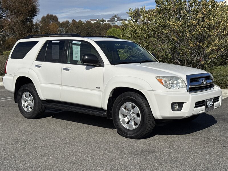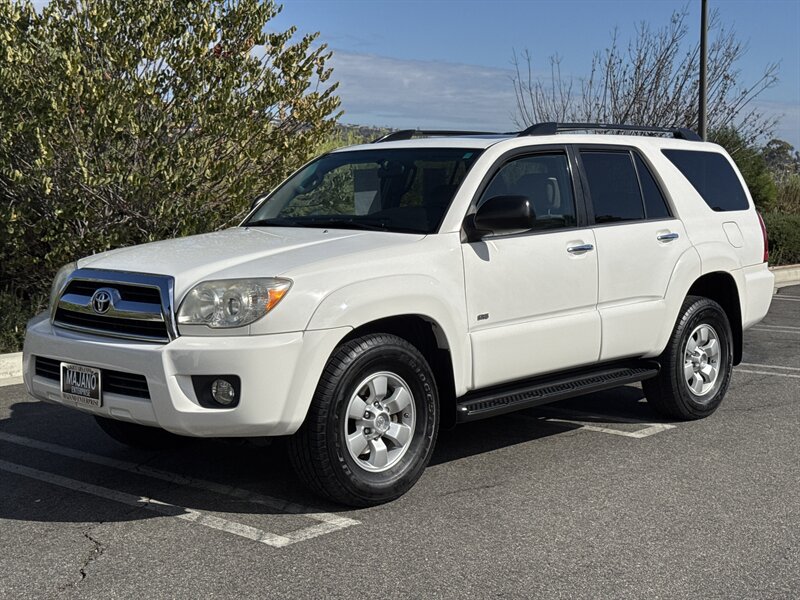 2007 Toyota 4Runner SR5 in Natural White with Beige interior — powered by a stout 4.0L V6 (236 hp, 266 ft·lb). Factory-equipped with creature comforts like power windows and locks, air conditioning, cruise control, tilt steering, AM/FM CD stereo, 60/40 split-fold rear seats, roof rails and alloy wheels, plus ABS and multiple airbags for safety. Below 100,000 miles (under 5,000/year), one-owner, clean CARFAX and in excellent overall condition — basically a reliable road warrior that still remembers how to be polite.