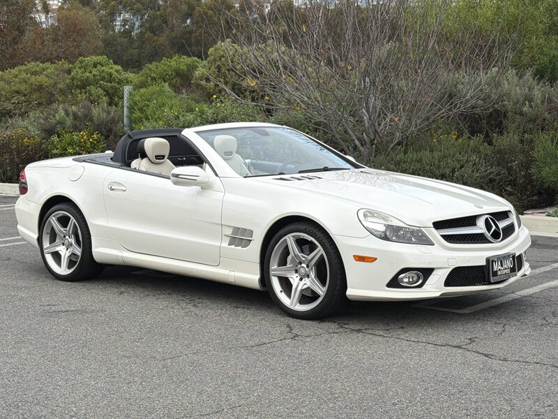 If you like your sports cars with a suit and a briefcase, meet the 2011 Mercedes-Benz SL 550 — a proper grand-tourer that still knows how to make an entrance. This example wears Diamond White Metallic paint like a tuxedo and a clean White interior that says “I brunch on leather, and I mean it.” Under the hood is the smooth, burly 5.5L V8 that produces 382 horsepower and 391 lb-ft of torque — plenty of muscle for effortless highway passes and neighborhood applause.