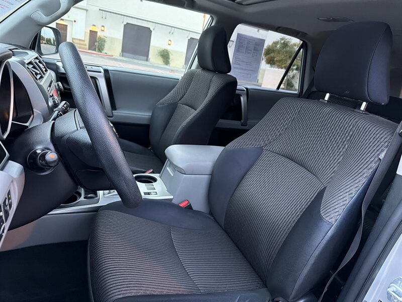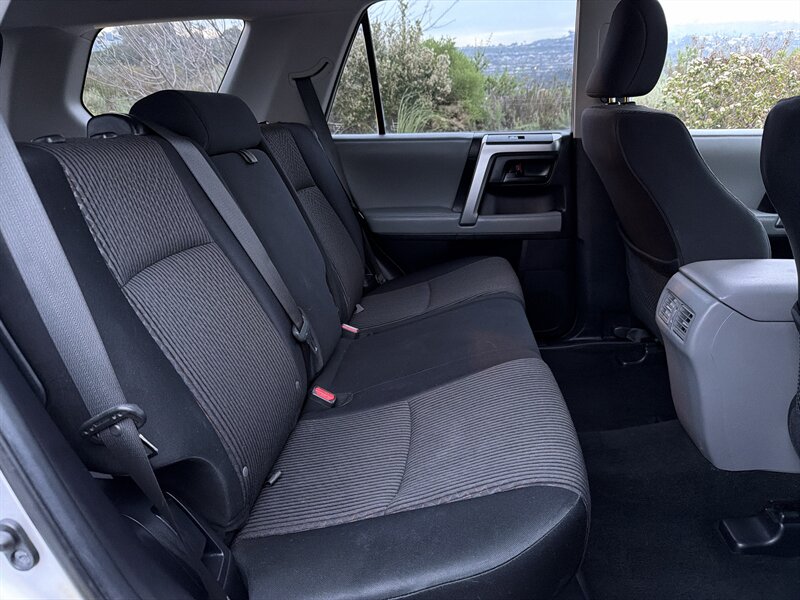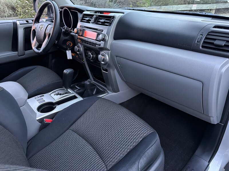 Silver 2011 Toyota 4Runner SR5 V6 — ready to boss the road. Factory-equipped with Toyota’s reliable 4.0L V6 paired to a smooth 5-speed automatic, sturdy suspension and proven towing capability; safety package includes ABS, traction and stability control plus front and full-length side curtain airbags. The black interior is practical and roomy with supportive seats, a 60/40 fold-down rear bench for cargo versatility, power windows and locks, remote keyless entry, air conditioning, cruise control and steering-wheel audio controls for the AM/FM/CD/MP3 stereo with auxiliary input. Finished in silver with alloy wheels and roof rails, under 104,000 miles (that’s under 7,000 miles/year), in excellent overall condition with a clean CARFAX — tempting, isn’t