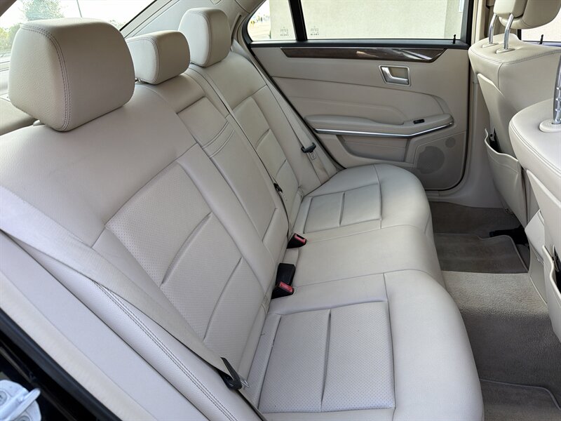 2014 Mercedes-Benz E250 BlueTEC Luxury — diesel charm with a tuxedo: Obsidian Black Metallic outside, Silk Beige/Espresso Brown leather inside (Black Ash wood trim for that “I-meant-to-do-this” look). Powered by a frugal 2.1L Twin-Turbo I4 (195 hp / 369 lb-ft), this one returns about 28 MPG city and 42 MPG highway — yes, classy and thrifty. Luxury trim and factory equipment include Mercedes’ safety suite (multi-stage airbags, ABS, Electronic Stability Program, Brake Assist and PRE-SAFE collision prep), power-adjustable front seats with memory, dual-zone automatic climate control, COMAND infotainment basics with Bluetooth, power windows/locks/mirrors, cruise control and elegant leather/wood appointments. Options and packages: Driver Assistance Package (advanced cruise/driver aids), Parking Assist Package with PARKTRONIC, Premium 1 Package and KEYLESS-GO. Excellent overall condition with a clean CARFAX — it’s the se