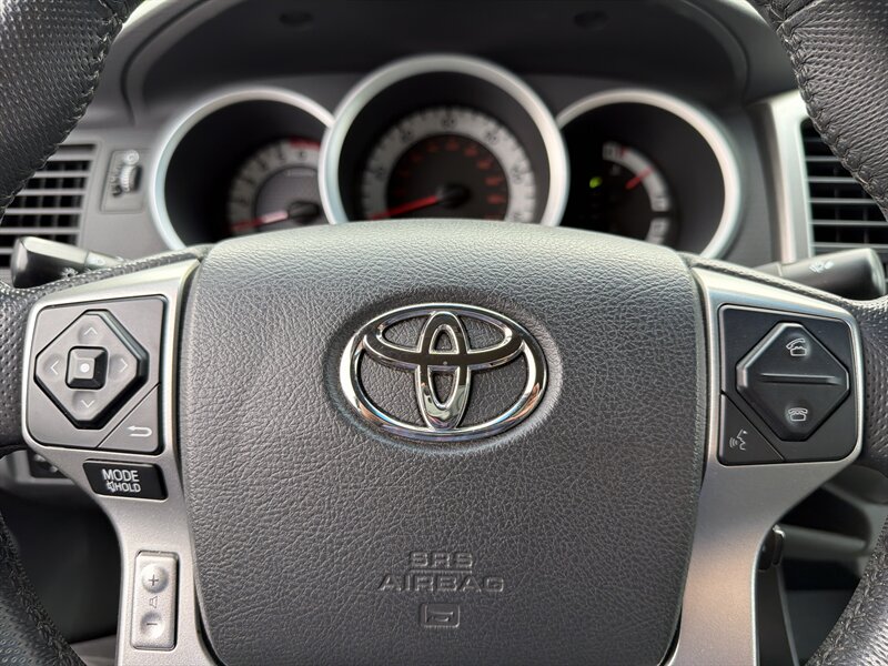 - TRD Off-Road Extra Value PackageIncludes off-road tuned suspension with bilstein shocks, locking rear differential, 16 In. alloy wheels with P265/70R16 BF Goodrich Tires, engine skid plate, front tow hook, 115v/400w deck powerpoint, fog lamps, remote keyless entry system, cruise control, variable speed wipers, power outside mirrors, overhead console with compass and exterior temperature gauge, chrome grill surround and rear bumper, color keyed front bumper and overfenders, smoked headlamp trim, sliding rear window w/ privacy glass, sport seats w/ driver lumbar support, sport fabric seats, metallic tone instrument panel, leather wrapped steering wheel w/ audio controls, leather wrapped shifter, dual sunvisors w/ mirrors and extenders, backup camera and auto-dimming inside rear view mirror w/ monitor, and TRD off road graphics.