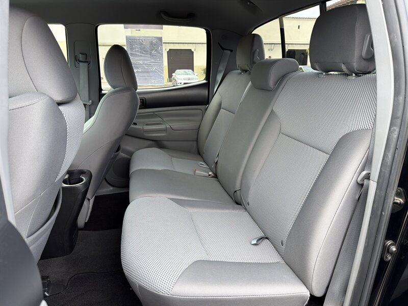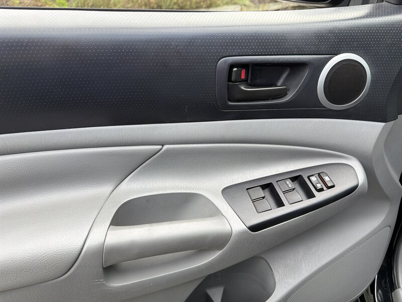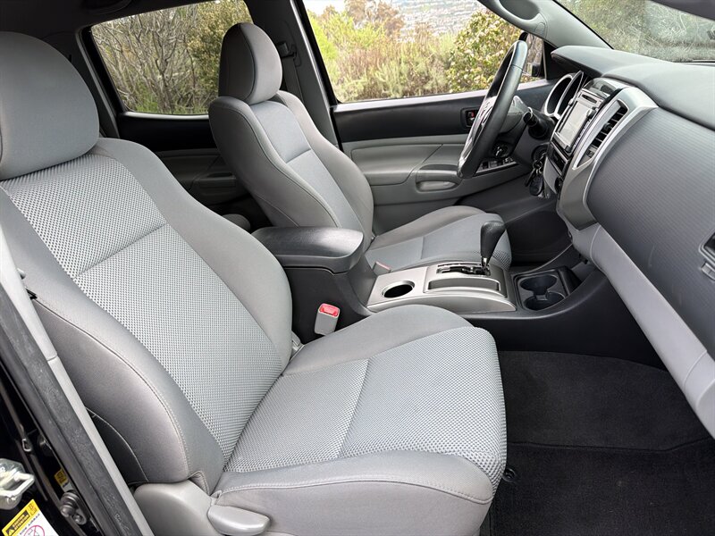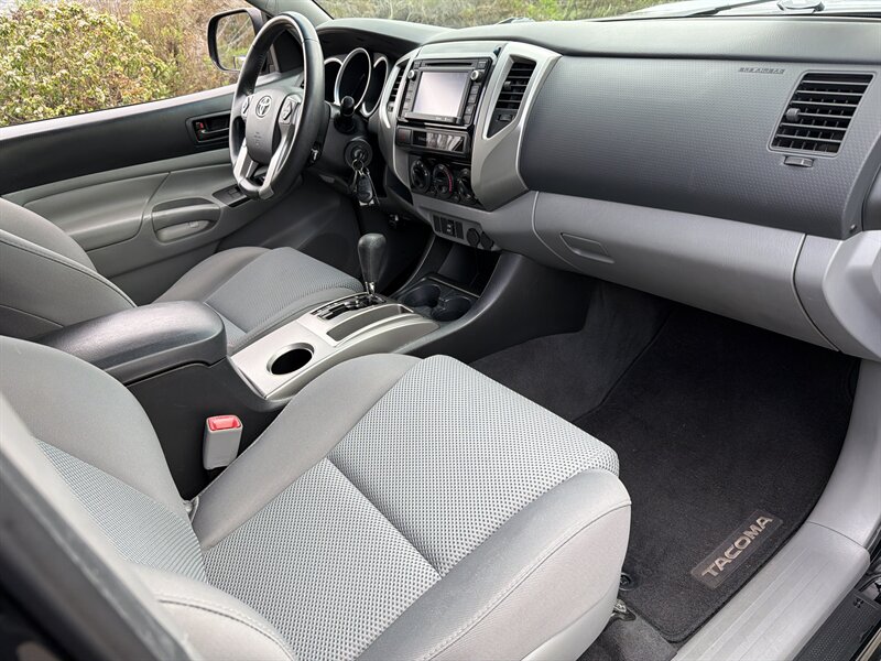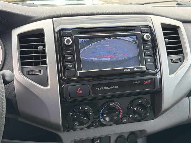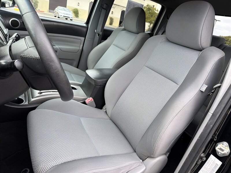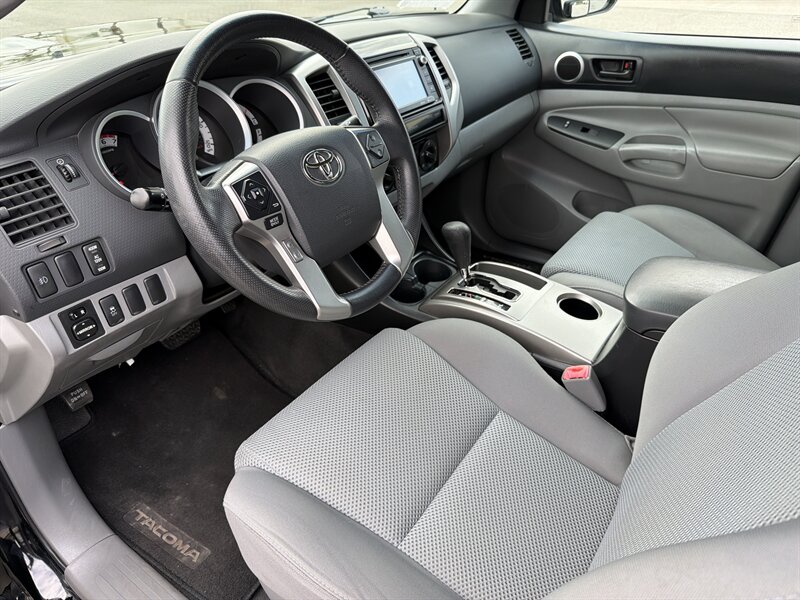 2015 Toyota Tacoma PreRunner V6 — Black exterior, Graphite interior, and the famously dependable 4.0L V6 (236 hp / 266 lb-ft) under the hood — a truck that looks ready for adventure and behaves like it has a PhD in reliability. Factory-equipped highlights: PreRunner chassis (rear-wheel drive with the lifted 4x4 look), durable cloth seating and a practical center console, power windows/locks/mirrors, remote keyless entry, cruise control, tilt steering, A/C, a competent factory audio system with AM/FM, CD, Bluetooth phone/audio streaming and aux/USB inputs, steering-wheel audio controls, bed tie-down hooks and a lockable tailgate area built for real work. Safety tech straight from the factory includes ABS, traction control and Toyota’s stability control plus front a