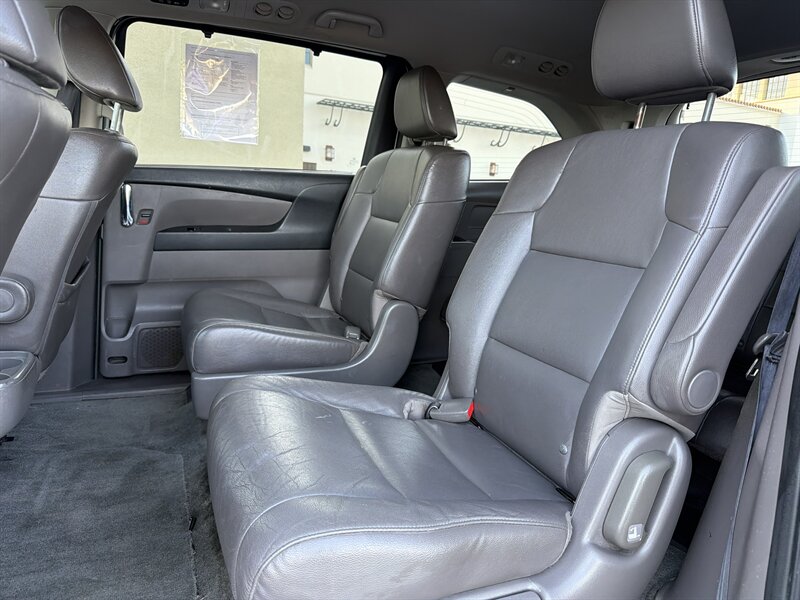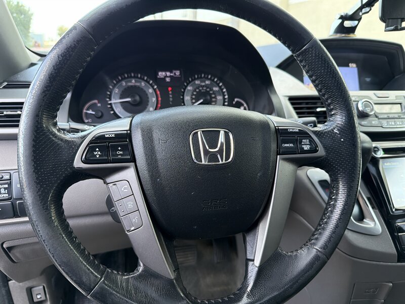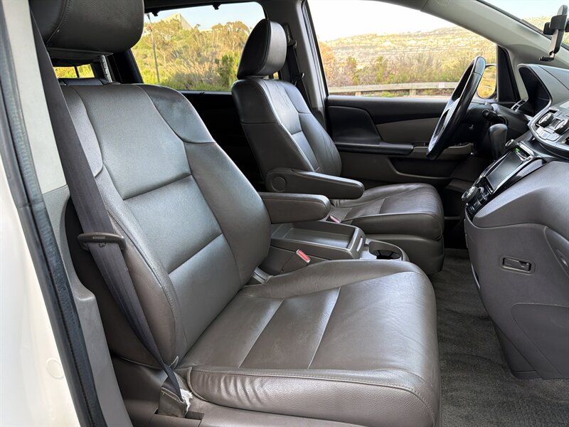 2016 Honda Odyssey EX-L w/Navi — the minivan that moonlights as a luxury limo for soccer, science fairs, and surprise taco runs. Powered by a stout 3.5L V6 with 248 hp and 250 ft-lbs of torque, finished in White Diamond Pearl with a clean Gray leather interior. Factory-equipped with leather-trimmed seats, heated front seats, power-adjustable driver’s seat, second-row captain’s chairs (7-passenger layout), Honda Satellite-Linked Navigation with voice control, multi-angle rearview camera, Bluetooth HandsFreeLink and streaming audio, USB/AUX inputs, tri-zone automatic climate control, power sliding doors, cruise control, steering-wheel audio controls and alloy wheels. Below 104,000 miles (averaging under 10,000/yr), excellent overall condition, 19 MPG city / 28 MPG highway, clean CARFAX and single-owner — reliable, roomy, and ready to chauffeur your whole crew (and their extra shoes).