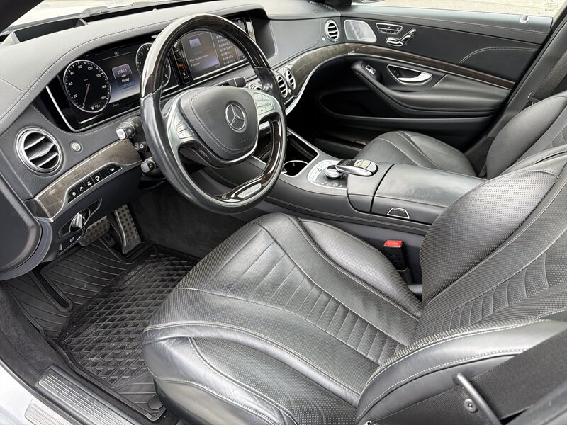 2016 Mercedes-Benz S 550 — Iridium Silver Metallic outside, Black Nappa Leather inside, and a 4.7L Twin-Turbo V8 putting out 449 hp and 516 ft-lbs of torque (yes, it still remembers how to sprint). Factory-equipped with premium Nappa leather seating (power, memory, heated and ventilated), COMAND navigation/infotainment with Bluetooth and USB, adaptive cruise (DISTRONIC), lane-keeping and Blind Spot Assist, PRE-SAFE collision tech, AIRMATIC air suspension for that “float on clouds” ride, LED lighting, power sunroof, keyless start/entry, rearview camera and parking sensors, multi-zone climate controls and ambient lighting — all the creature comforts and safety toys Mercedes packs in at build time. Below 57,000 miles (under ~6,000 miles/year), excellent overall condition and a clean CARFAX — ready to chauffeur you in style (and occasionally terrorize traffic lights).