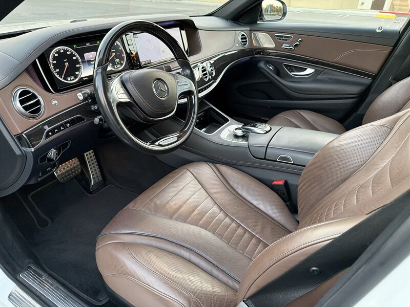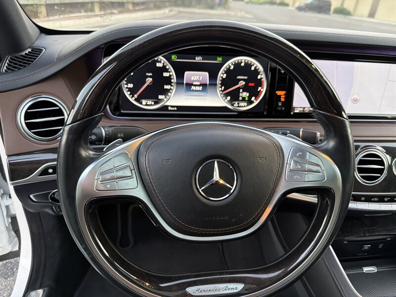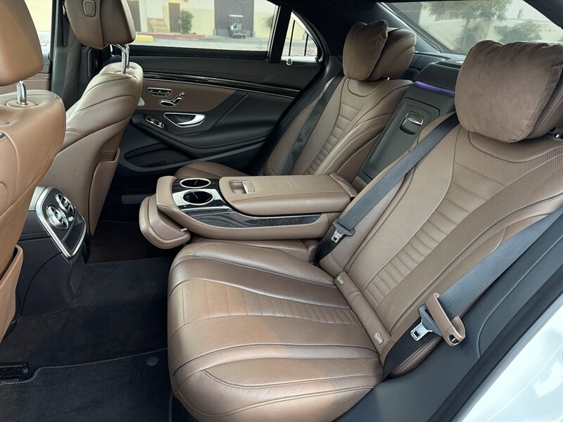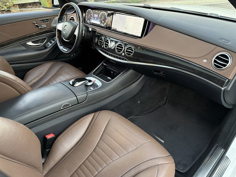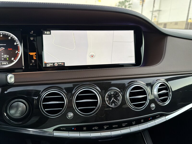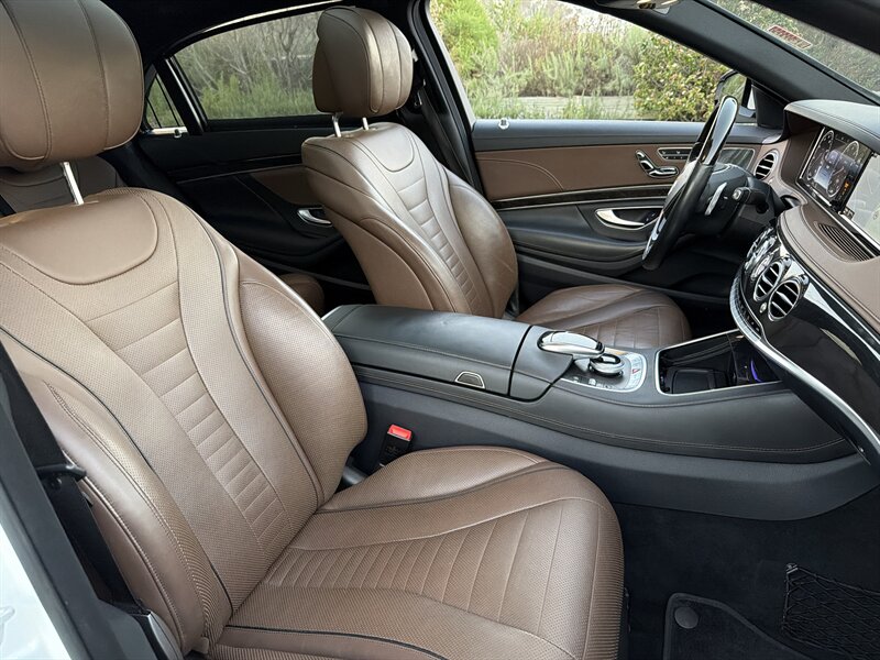 Standard Mercedes-S-Class creature comforts: sumptuous Nappa leather seating, rich wood trim, power-adjustable heated front seats with memory, COMAND infotainment with navigation and Bluetooth, premium audio, dual-zone climate control (with rear vents), adaptive air suspension for that cloud-like ride, LED exterior lighting, power sunroof, keyless start/entry,