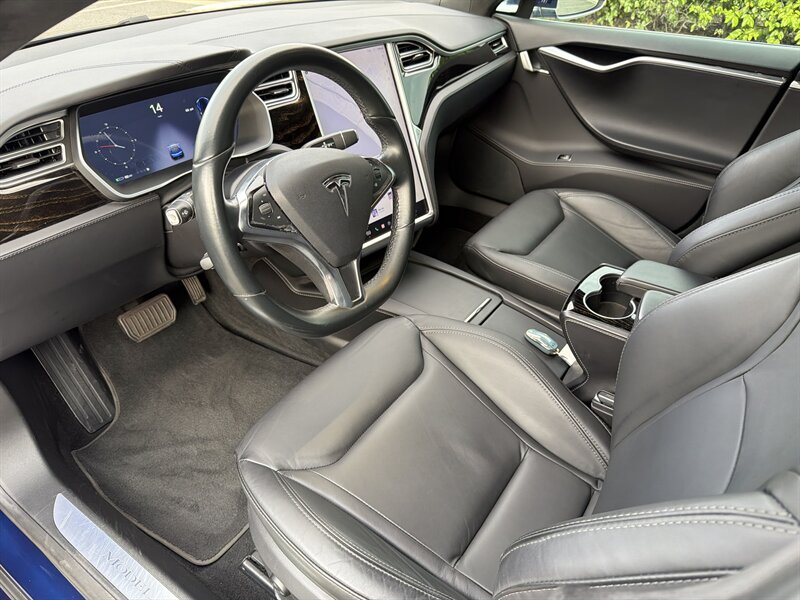 2016 Tesla Model S 75 — Blue exterior, Black interior, Electric 315 hp / 325 ft-lbs. Quietly rocket-like with under 57,000 miles (averaging <6,000/year), one owner and a clean CARFAX — excellent condition. Factory comforts include the 17" touchscreen with navigation and Bluetooth, premium audio, rearview camera, heated power front seats, dual-zone climate control, keyless entry/start and power liftgate, LED headlights, alloys, full safety suite (airbags, ABS, traction/stability control), regenerative braking and convenient EV charging capability. Adds: Metallic paint and an all-glass panoramic roof — perfect for showing off the blue and the sky while silently judging gas stations.