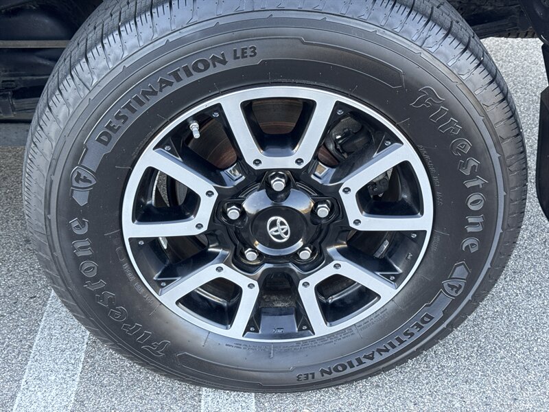 - TRD Off-Road PackageIncludes Blistein shock absorbers, 18 inch off-road alloy wheels with P275/65R18 tires, rear side privacy glass, engine skid plate, fuel tank skid plate, and decals.