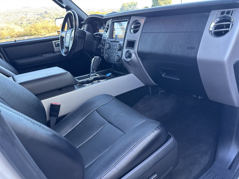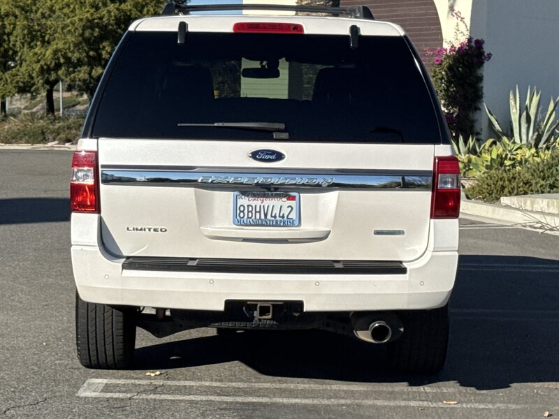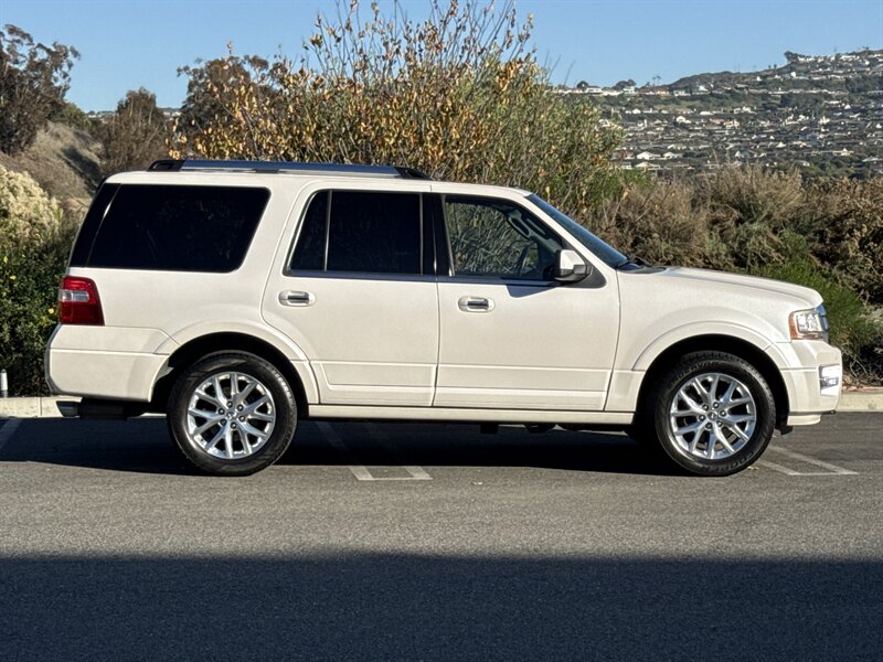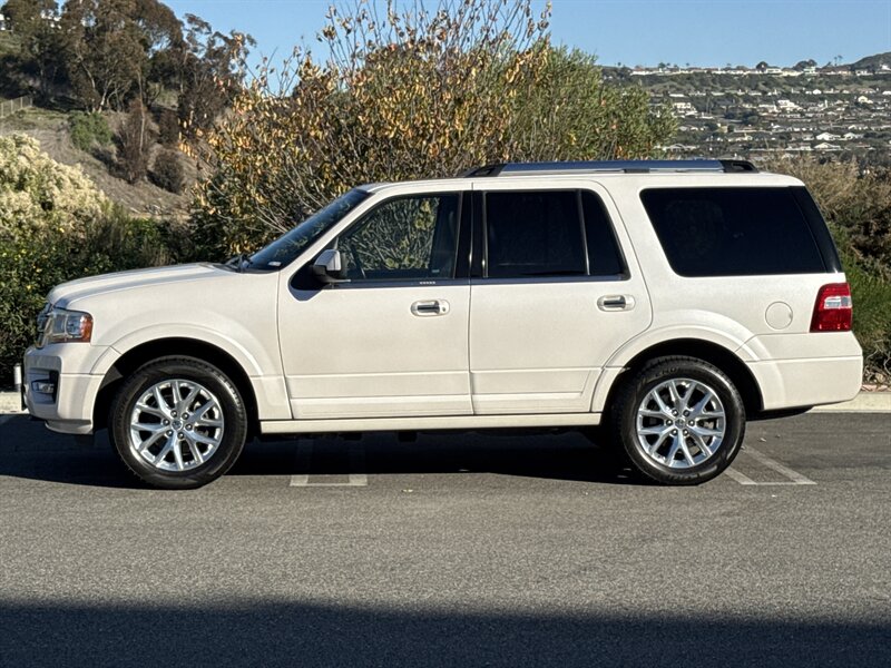 Like a gentle giant with a PhD in towing, this 2017 Ford Expedition Limited 4x4 packs an EcoBoost 3.5L Twin Turbo V6 (365 hp / 420 ft. lbs.). Factory-equipped with leather-trimmed Ebony seating (heated and ventilated up front) with driver memory, tri-zone automatic climate control, power-folding third row, hands-free power liftgate, keyless entry and push-button start, touchscreen infotainment with Bluetooth and navigation capability, premium audio, rearview camera and parking sensors, blind-spot monitoring with cross-traffic alert, trailer-tow prep, roof rails and alloy wheels. Finished in White Platinum Metallic Tri-Coat, under 94,000 miles (avg. <10,000/yr), single-owner with a clean CARFAX and in excellent overall condition — big SUV, small mileage, lots of personality.