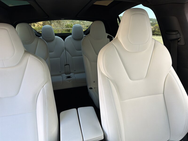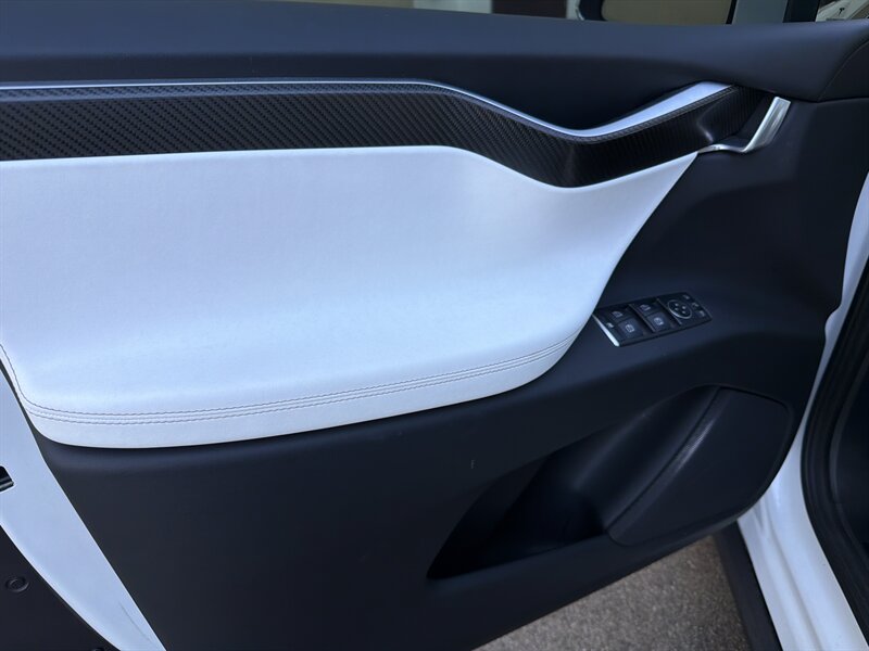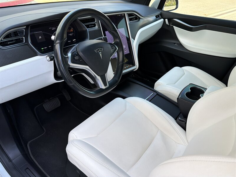 Pearl White Multi-Coat 2017 Tesla Model X 100D — looks like a spaceship, drives like one too. Powered by a 100 kWh electric setup with dual-motor AWD, 328 hp and 387 lb-ft of instant torque (no revs, just whoosh). Factory-standard goodies include the signature Falcon Wing rear doors, panoramic windshield, 17-inch center touchscreen with navigation, premium audio and Bluetooth, heated power-adjustable Ultra White seats (7-passenger layout available), backup camera and parking sensors, power liftgate/folding mirrors, LED lighting, regenerative braking, Autopilot-capable hardware and over-the-air software updates — basically a rolling tech demo. Below 95,000 miles (under ~10k/year), excellent condition with a clean CARFAX — ready to impress your neighbors and confuse a few gas stations.