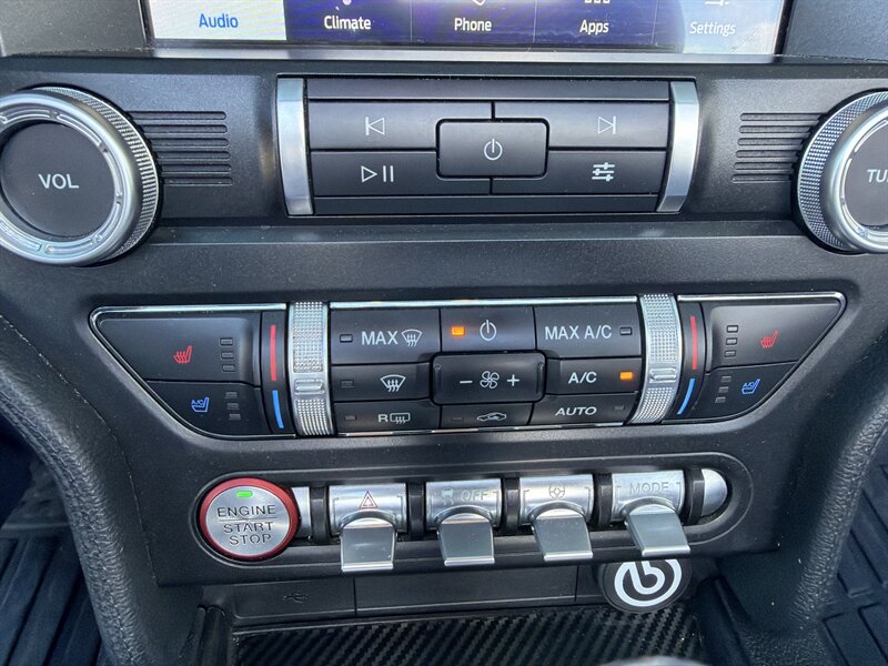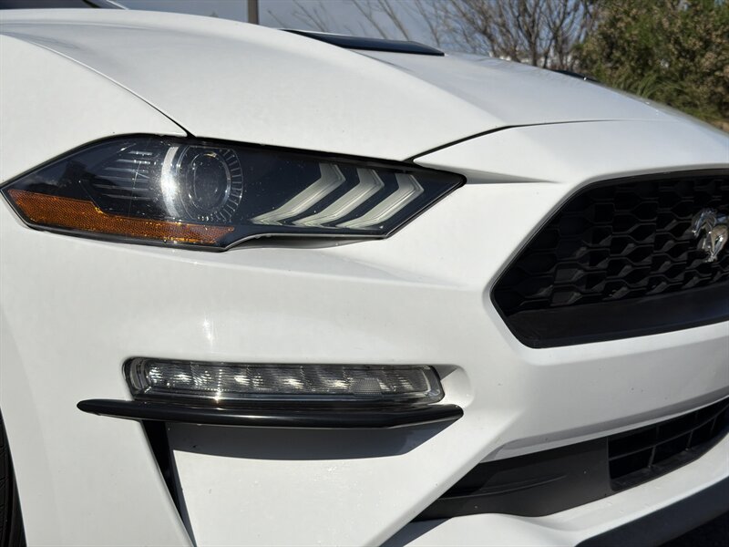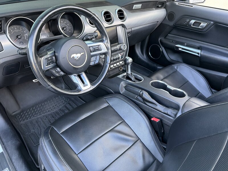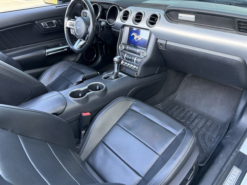 2022 Ford Mustang EcoBoost Premium in Oxford White with an Ebony interior — powered by a punchy 2.3L EcoBoost Turbo I4 (310 hp, 350 lb-ft). Factory-equipped with leather-trimmed heated and ventilated front seats, power-adjustable driver seat, dual-zone automatic climate control, Ford SYNC touchscreen with Apple CarPlay/Android Auto, keyless entry and push-button start with remote start, rearview camera, blind-spot monitoring with cross-traffic alert, rear parking sensors, LED headlights, 19" alloy wheels and active-valve dual exhaust. Rated 20 MPG city / 27 MPG highway, in excellent overall condition with a clean CARFAX — sporty, tidy, and ready to make your commute feel like a victory lap.